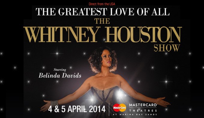 For two nights only, direct from the USA to Singapore, The Greatest Love Of All – The Whitney Houston Show starring Belinda Davids, will be playing at the MasterCard Theatre, Marina Bay Sands on 4 & 5 April 2014.
