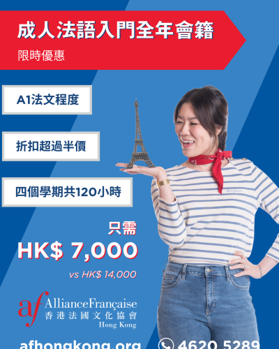 This September, AFHK is introducing an exclusive Yearly Beginner Adults Membership offer designed for beginner learners. Students can now access all four sub-levels of the A1 French curriculum for only HK$7,000—less than half the regular price of HK$14,000. The initiative underscores AFHK’s dedication to making French language education more affordable and inclusive for the broader community. Registration is now open, register to enjoy up to 50% off with the Yearly Beginner Adults Membership!