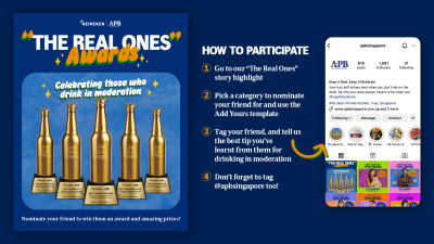 Everyone is invited to nominate their “Real Ones” who fit into any of the five categories above using customised Instagram Story templates available on APBS’ Instagram page. The perfect chance this holiday to acknowledge their effort and thank those who help you out during moments of overindulgence, anyone can submit their entries simply by using the “Add Yours” function on the templates and sharing the best tips learned from their “Real Ones” on drinking responsibly.