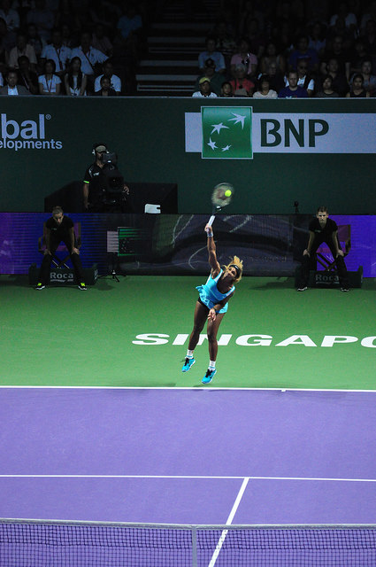 With a capacity crowd in the Singapore Indoor Stadium, the audience was expecting a close match between world number One Serena Williams and Simona Halep. They were excited to see how Serena will react after her round-robin loss to Simona Halep, and if the Romanian can repeat the feat again. It sure looked that way at the beginning of the match. Serena looked tight from the first game, committing loose errors and even throwing in a double fault. However, Simona was unable to capitalise as Serena saved the break points with good serves. Games went according to serve until the third game, where Serena made mistake after mistake. A good backhand down the line induced another error from Serena, with the Romanian drawing first blood at 2-1.