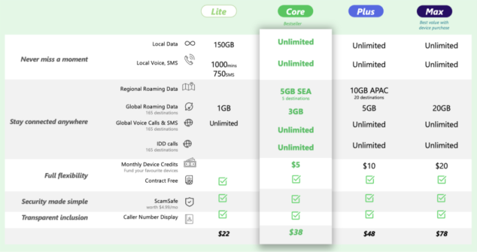 | Unlimited 5G local data, calls and SMS | No more usage tracking or bill shock |