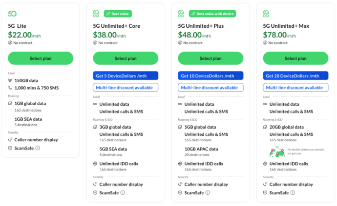 Lite, Core, Plus and Max options allow customers to choose based on how they live, work and travel. Every plan delivers the same peace of mind, but with flexibility to scale up if life gets busier. StarHub takes care of the biggest connectivity headaches, from roaming hassles to scam messages, so customers can focus on what matters. There are no limits to manage and no contracts to feel restricted by. Just reliable 5G freedom.