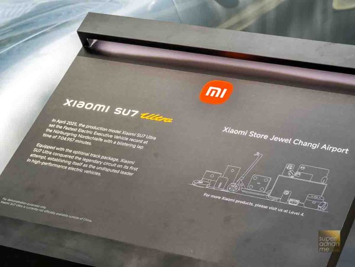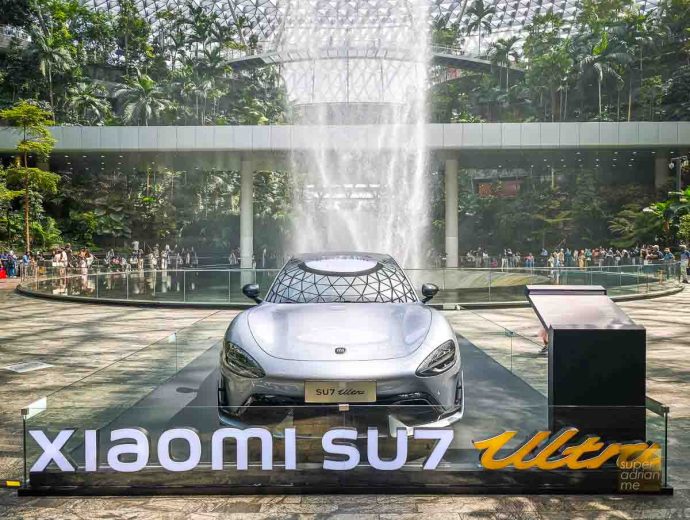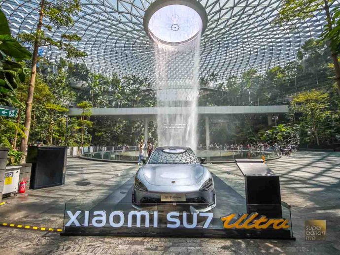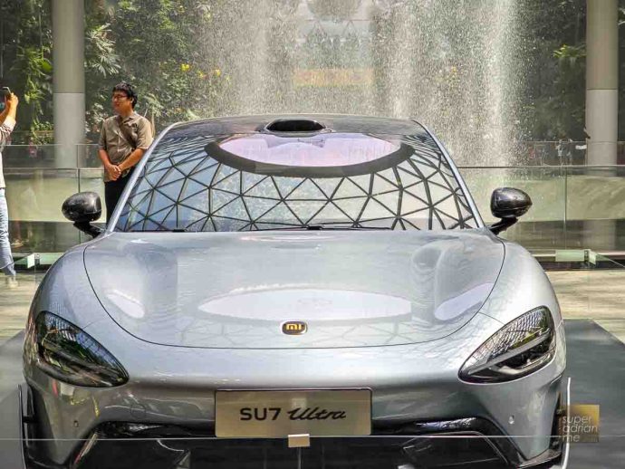 The Xiaomi SU7 Ultra is on display at the Jewel Rain Vortex. There hasn’t been any announcement whether Xiaomi will sell its electric vehicles in Singapore.