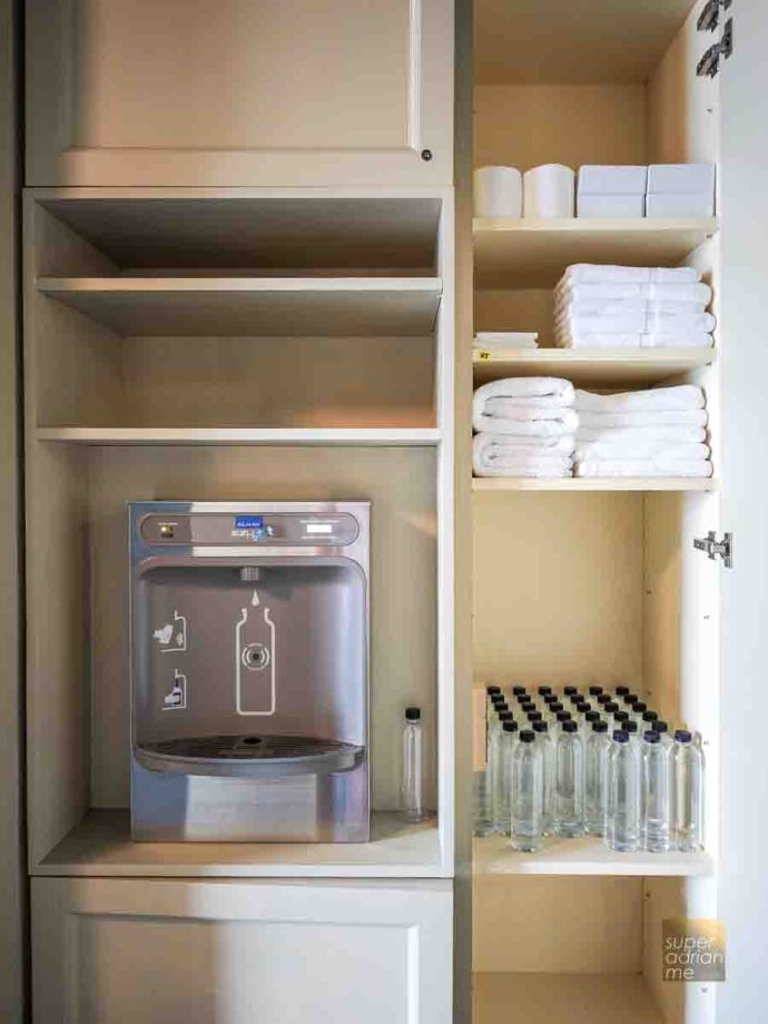 Rooms here feature comfortable beds and basic amenities. Water dispensers and an locked cupboard of amenities are available at the lift lobby on every room floor. Accessible with the room key card, guests and help themselves to bottled water, more towels from the amenity cupboard.