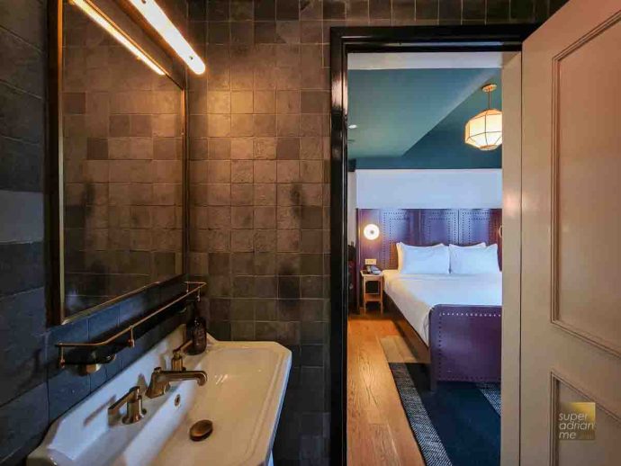 The Tow Kay Suite where we stayed in was cramped with a desk and some space to hang clothes. The addition space in the Tow Kay Suite that differentiates it from the other rooms is the television corner with a sofa. Floor to ceiling windows showcase the LRT train that frequents the above ground tracks. Thanks to triple glazed windows, sound from outside doesn’t get into the room.